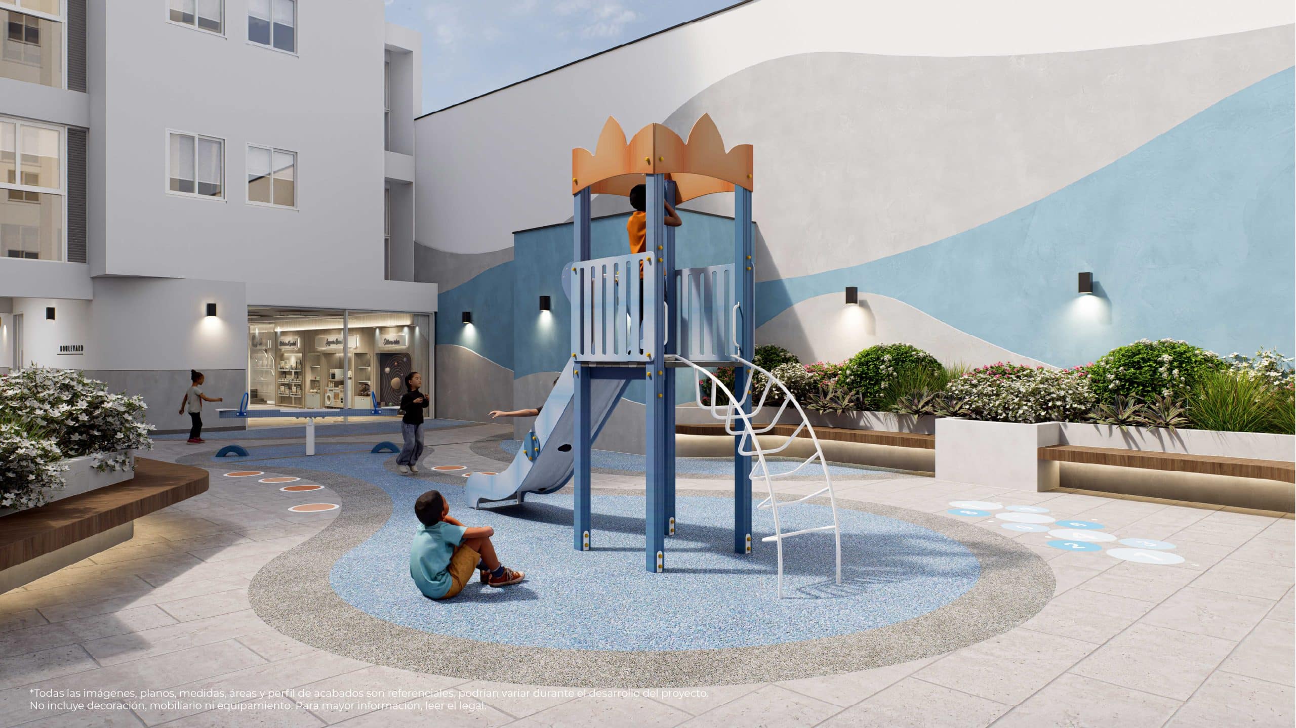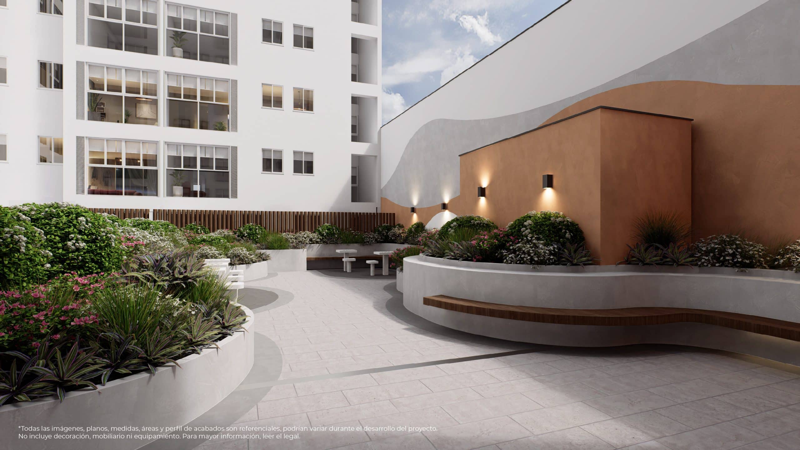 Departamentos pensados para familias modernas, con áreas comunes funcionales, espacios que florecen contigo y una ubicación privilegiada que te abraza desde el primer día.